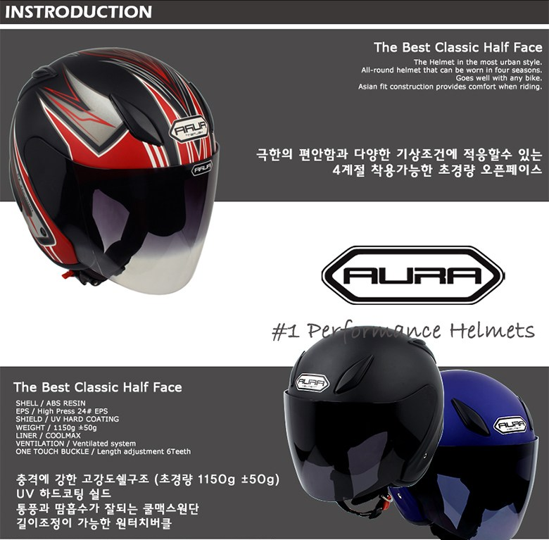 가성비 최고의 오토바이 헬멧인 아우라3모델 적극 추천드립니다!